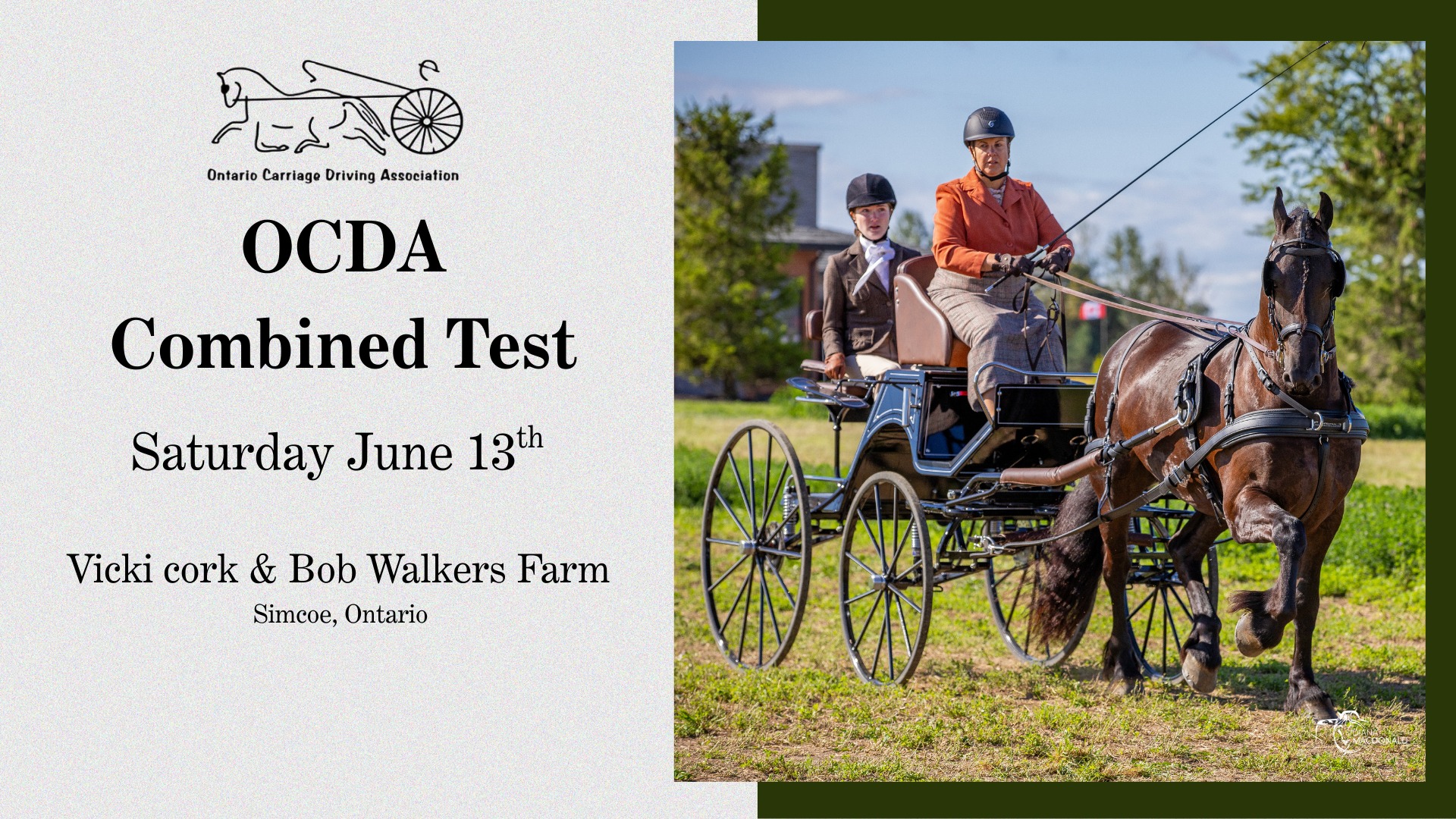 Ancaster Fairgrounds 630 Trinity Road South, Jerseyville, Ontario, CanadaThe Ontario Carriage Driving Association will hold a Combined Test on the first day of the pleasure show. The combined test results will count toward 2026 OCDA High Point awards.